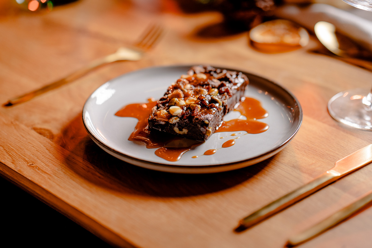Produktinformationen "Weihnachtlicher Schokoladenbrownie mit Orangen Toffee (vegan)"